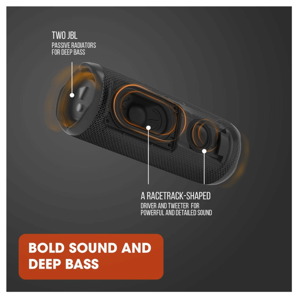 La JBL Flip 6 camouflage délivre un son dynamique. Son woofer dédié renforce les basses tandis que son tweeter assure des aigus précis. De plus, la technologie Bluetooth 5.1 garantit une connexion stable et rapide. Vous écoutez donc vos playlists sans coupure, où que vous soyez.
